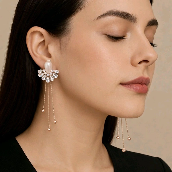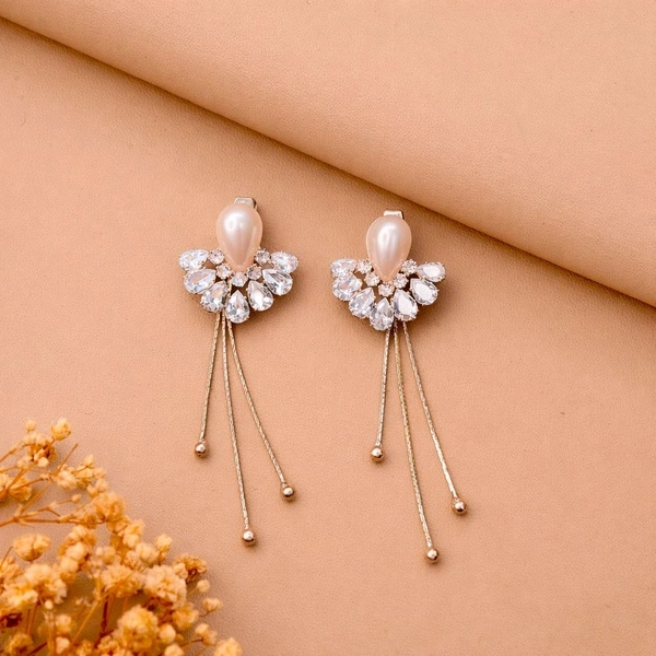 Radiant Crystal Wing Pearl Drops ( Premium Earrings )